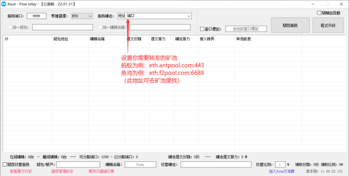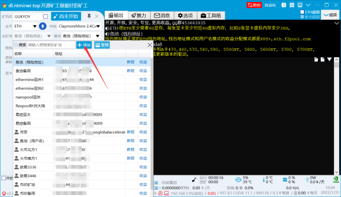 2、添加你的矿池、服务器的为(公网IP:服务端口)局域网的为(IPV4:服务端口)