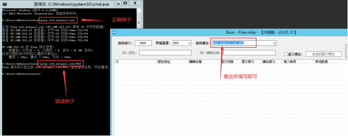 3、找到矿池地址后一定要PING,一定(运行、CMD、ping 矿池地址)只有看到有数据才能填写进Powrelay里去,否则凉凉。