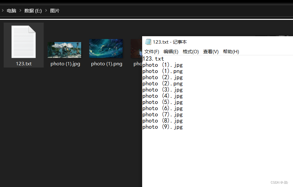 例如: dir M:\情满客家摄影比赛\作品汇总 /b >M:\情满客家摄影比赛\作品汇总\123.txt