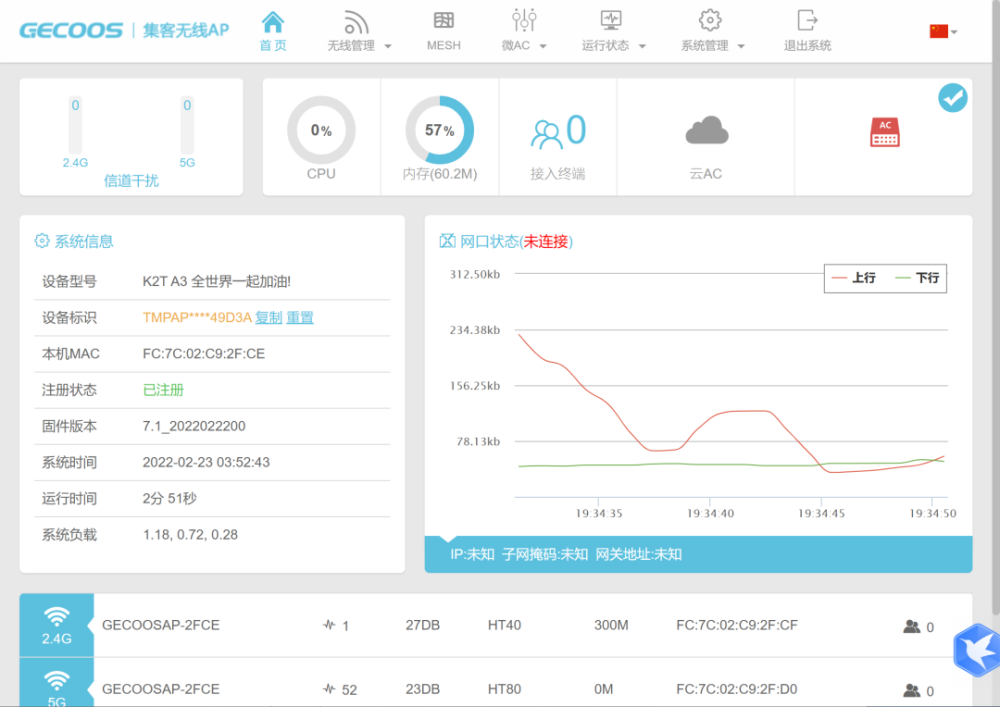 啊对,这只是个ap,所以功能少点,甚至没有拨号上网的功能,还要搭配AC才能实现全屋覆盖。或者各位直接MESH也可以。